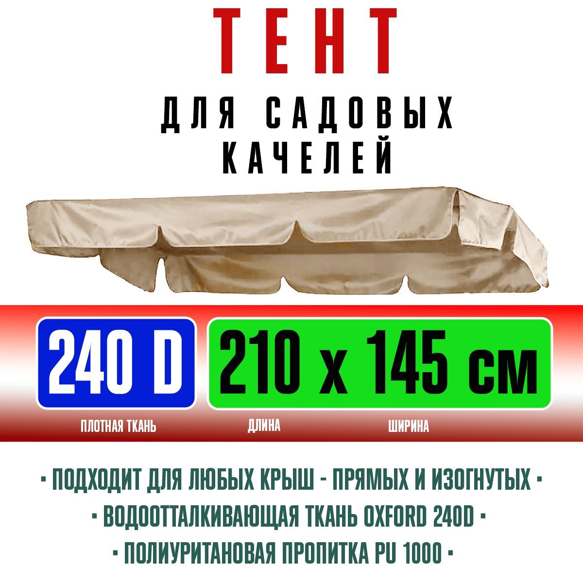 Тент для садовых качелей, бежевый, 210х145